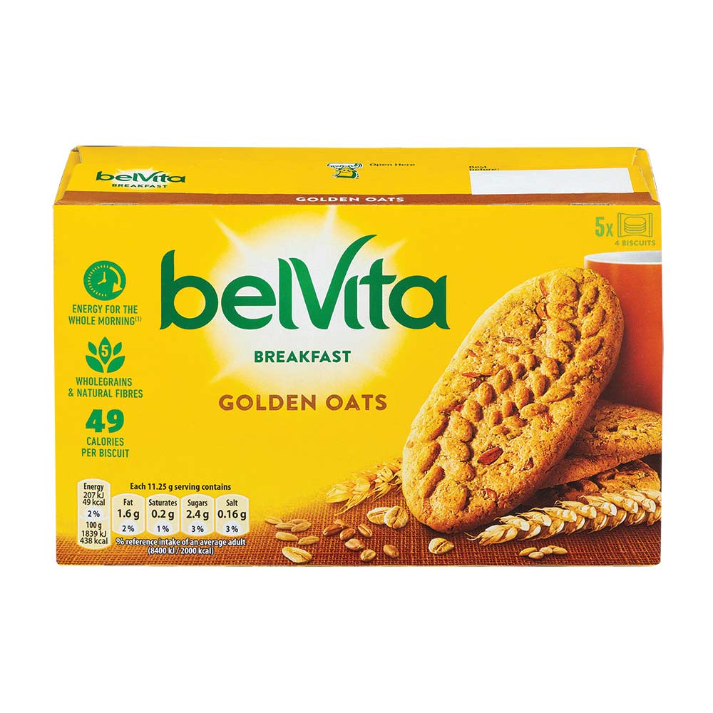 Kick start your mornings with our Belvita Golden Oats breakfast biscuits. Packed full of flavour, the handy-sized Belvita breakfast biscuit is made from sustainably sourced wheat, oats, barley, spelt and buckwheat or rye wholegrains.
