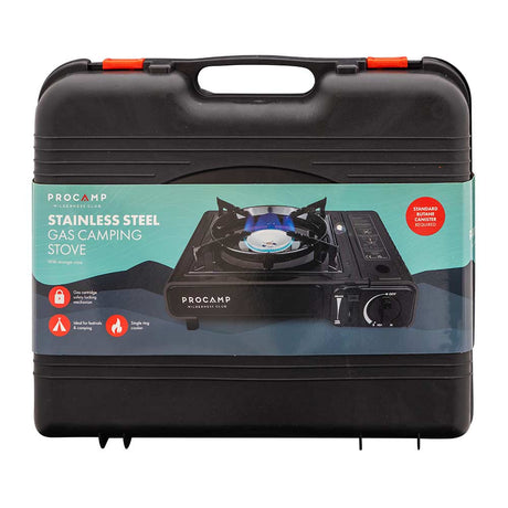Plus, if you do get peckish, we also stock a gas camping stove. Easy to use, this sturdy, single ring camping stove with carry case only requires a standard butane gas canister for you to start cooking for family and friends outdoors.