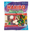 Haribo Merry-Mix Limited Edition is a merry mix of Christmas themed sweets including Strawberry, Candyfloss plus a Marshmallow Snowman. This 160g bag is perfect for sharing with friends and family over the festive season!