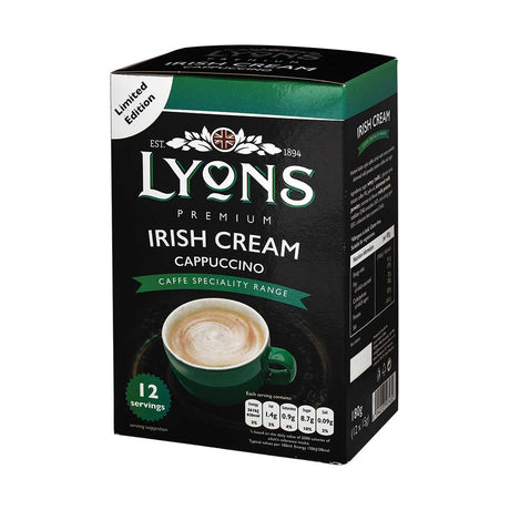£1.25Unit price /Unavailable£0.69 / 100gLyons Premium Irish Cream Cappuccino Sachets 15g x 12 Pack