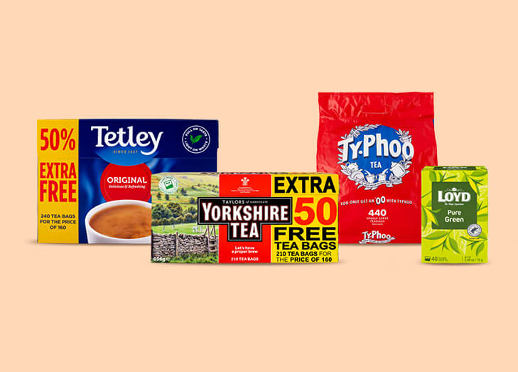 Start your day the right way with Poundstretcher’s wide range of everyday teas from trusted, iconic brands including Tetley, Typhoo, and Yorkshire Tea.