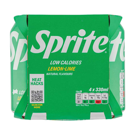 Sprite Lemon & Lime Soft Drink Cans Low Calorie 330ml x 4 Pack