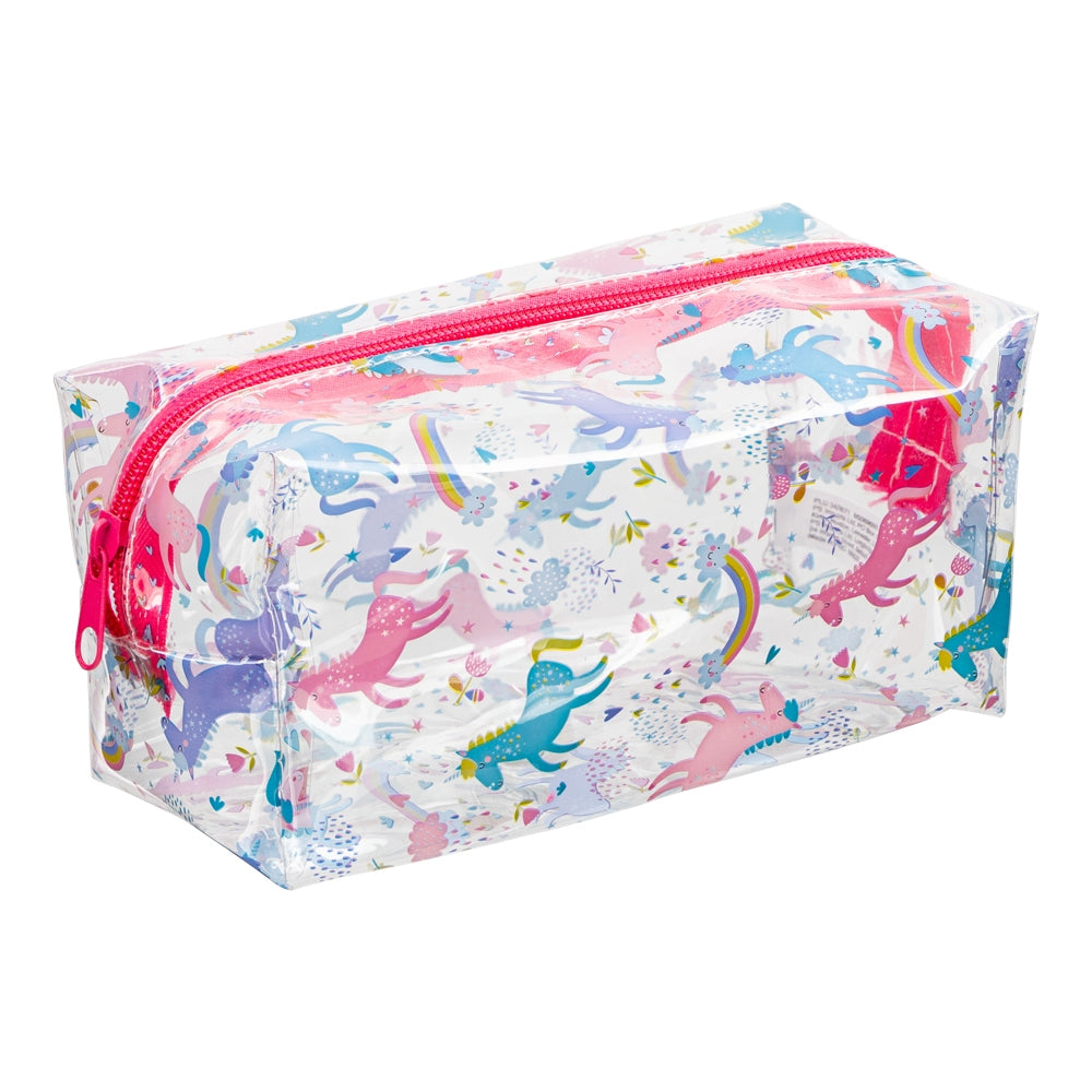 Keep all your pens, pencils, erasers and more in one place with this Clear Unicorn Pencil Case. An eye catching design for all ages, it's guaranteed to add a fun touch to your desk at home, work or school.
