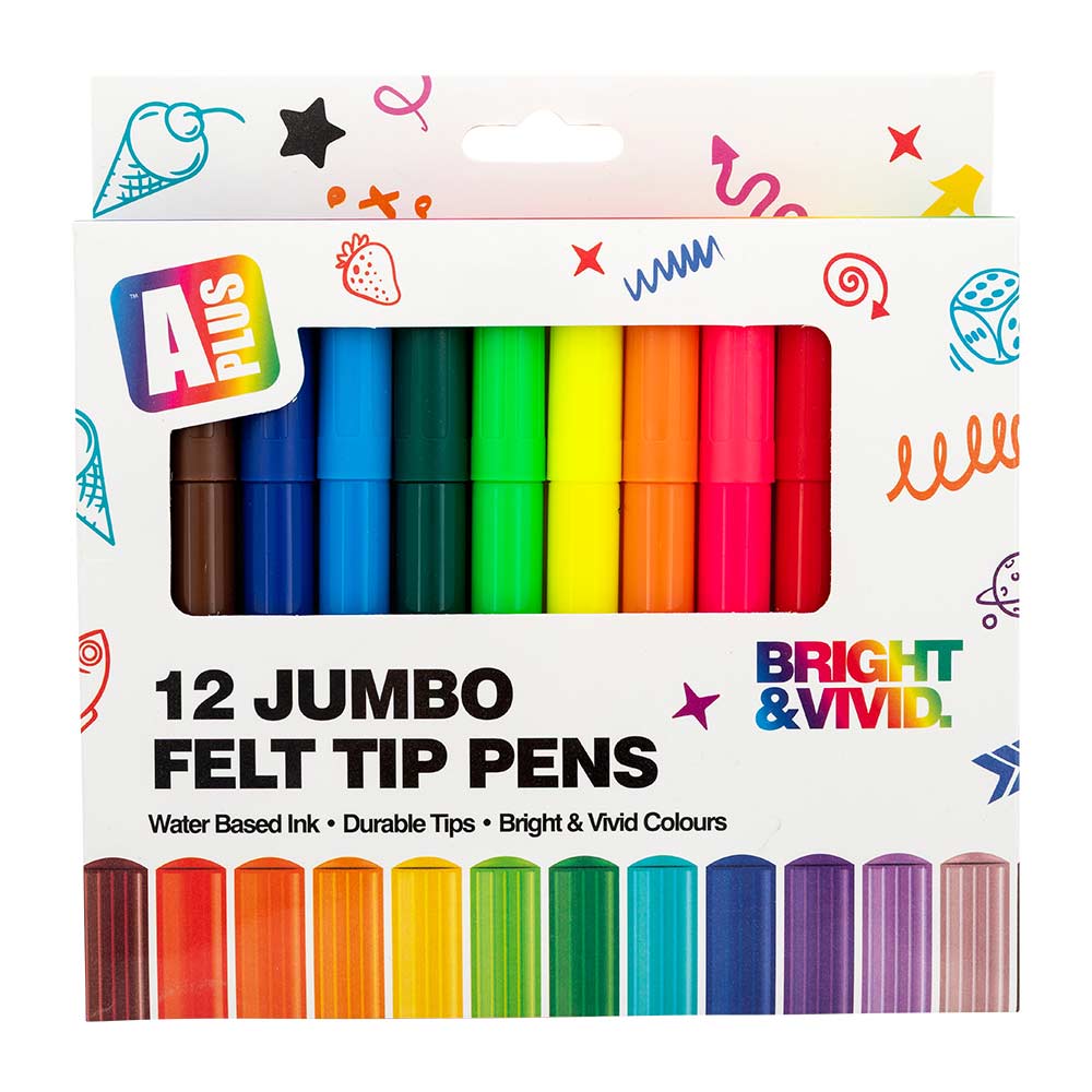 Colouring just became a whole lot more fun for the kids with these jumbo felt tip pens. Ideal for everyday use from home to school, this 12 pack of water-based jumbo felt tip pens comes in a range of bright and vivid colours to help brighten up their drawings!