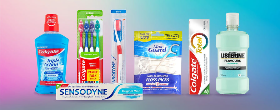 Choose from trusted branded toothpastes from Aquafresh, Colgate and Macleans; soft and medium-bristle toothbrushes, refreshing mouthwashes, dental floss, and more - all at low prices. Our products are suitable for the whole family, making it easy to build an affordable daily routine that keeps your teeth clean, healthy and sparkling.