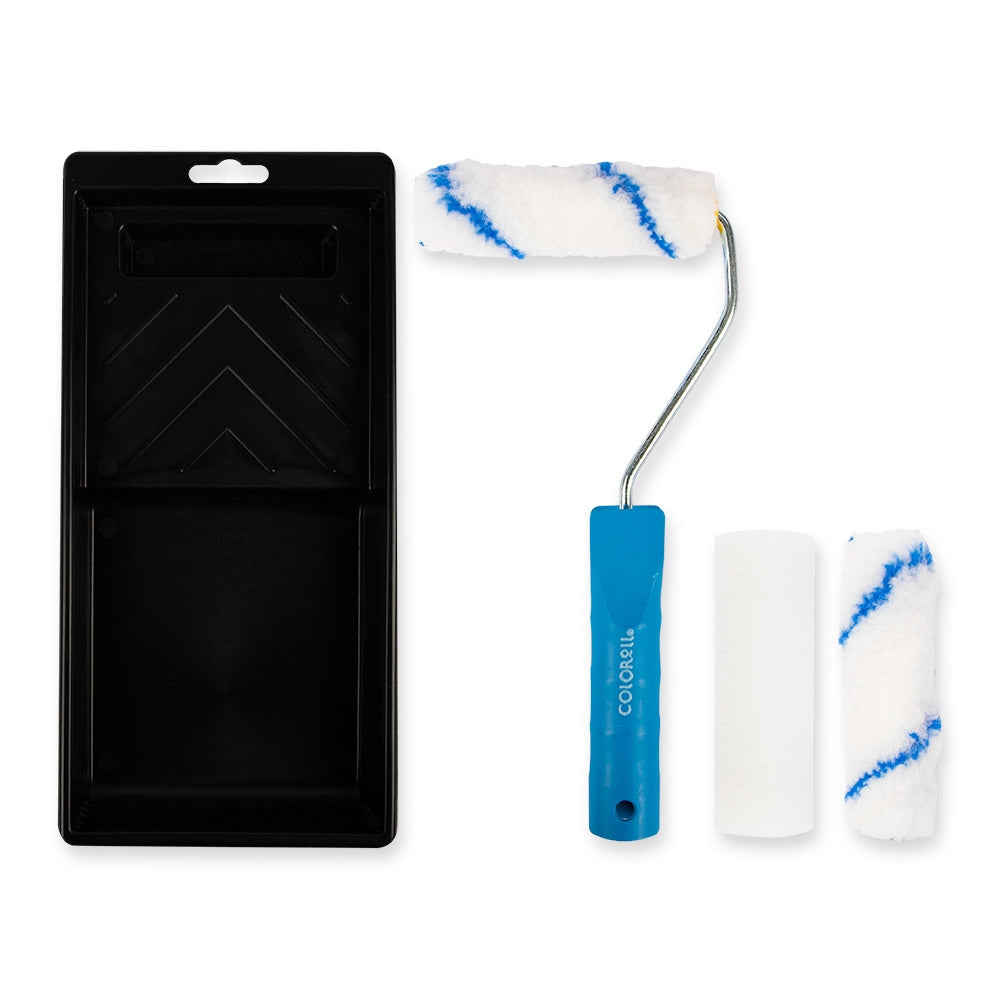 This 100mm Roller Set is a high quality decorating accessory that ensures amazing, splash free results. Each set comes with a roller tray, frame with a soft grip handle and one emulsion and one gloss sleeve.
